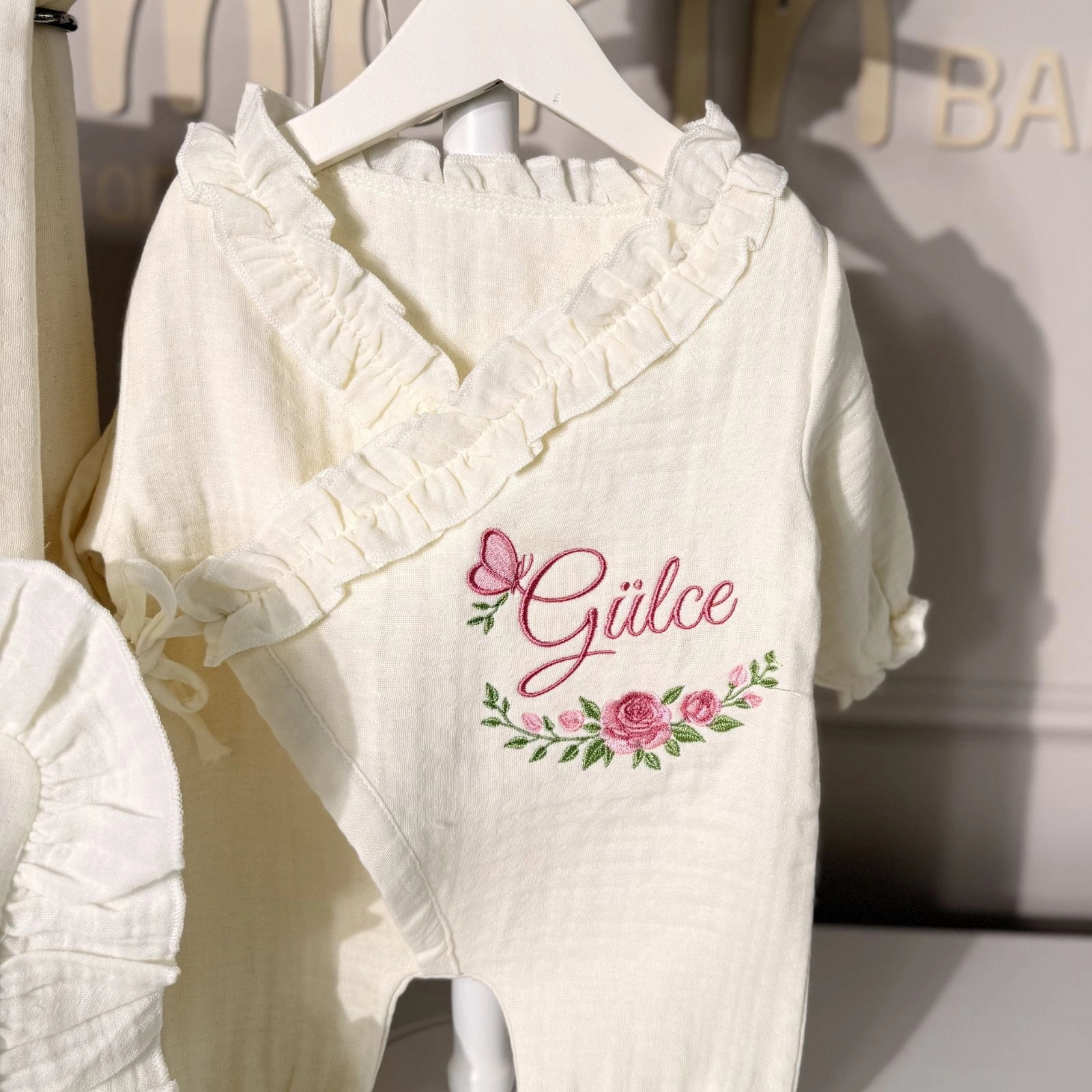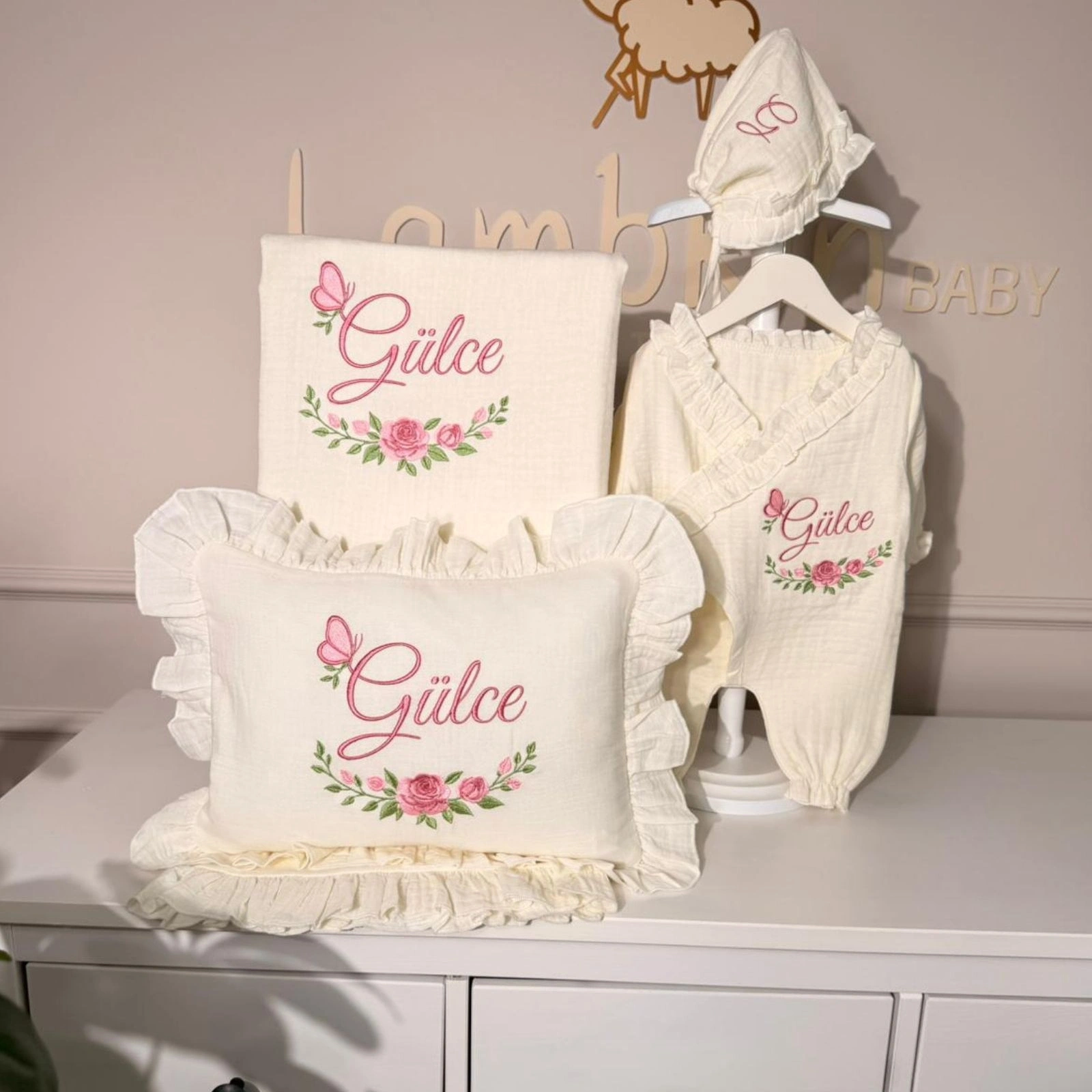 Bu set, yeni doğan bebekler için tasarlanmış, tamamı %100 pamuk müslin kumaştan üretilen premium ürünlerden oluşur. Yüksek hava geçirgenliği, yumuşak dokusu ve antialerjik yapısı ile bebeğin günlük konforunu maksimum seviyeye taşır.
