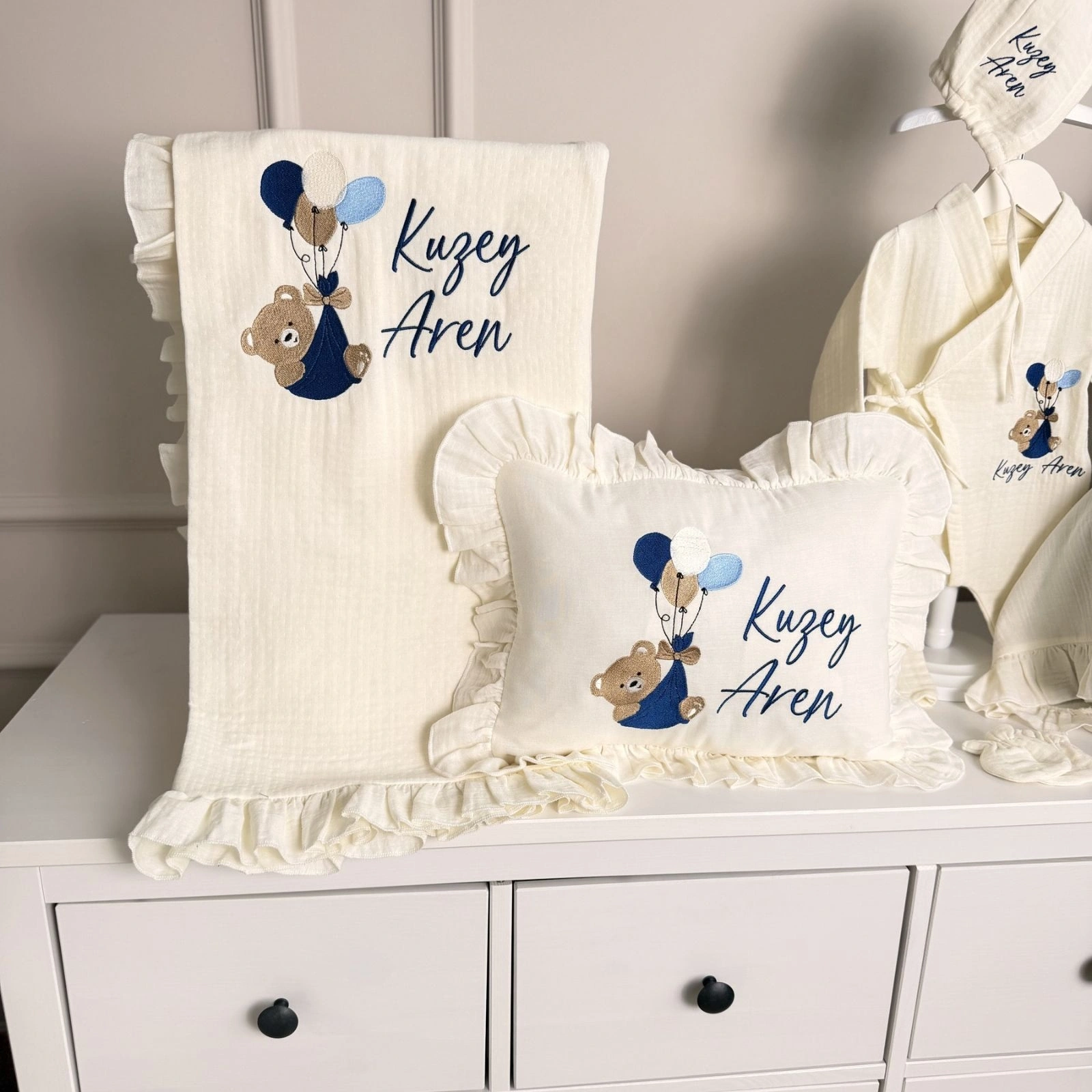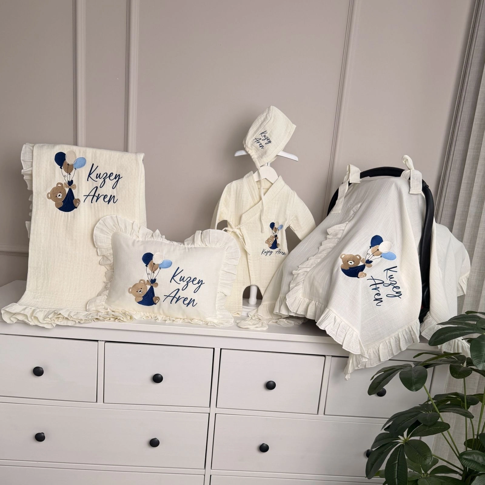 Nakışlı İşlemeli İsimli Hastane Çıkışı Seti 4 Parça