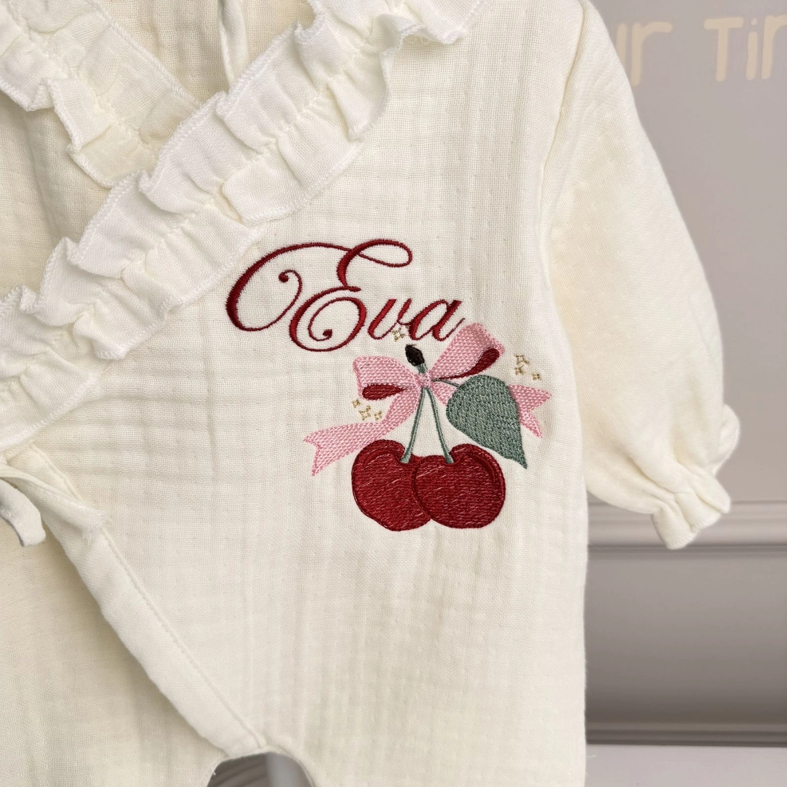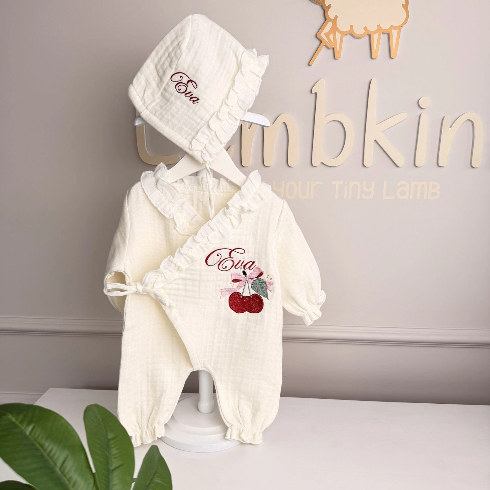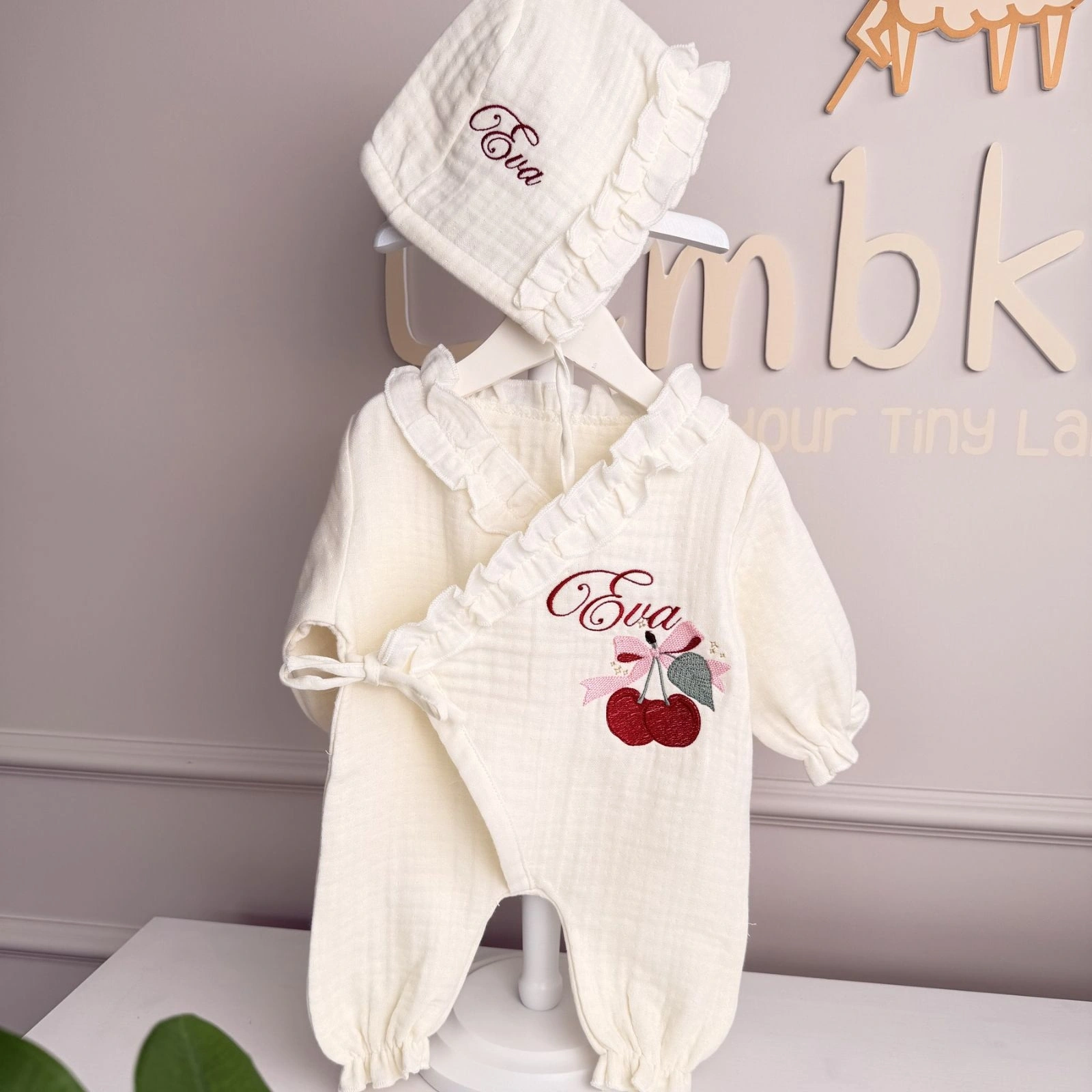 %100 pamuk müslin kumaştan hazırlanan kruvaze yaka tulumumuz, yenidoğan bebeklerin hassas cildi düşünülerek özenle tasarlanmıştır.